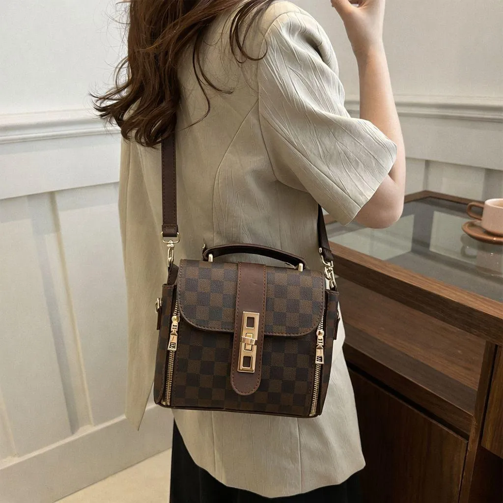 Designed with a classic checkered pattern and rich brown tones, this bag easily complements both casual and formal outfits. Whether you’re heading to college, work, shopping, or a family gathering, it adds a chic touch to your overall look while keeping your essentials organized.